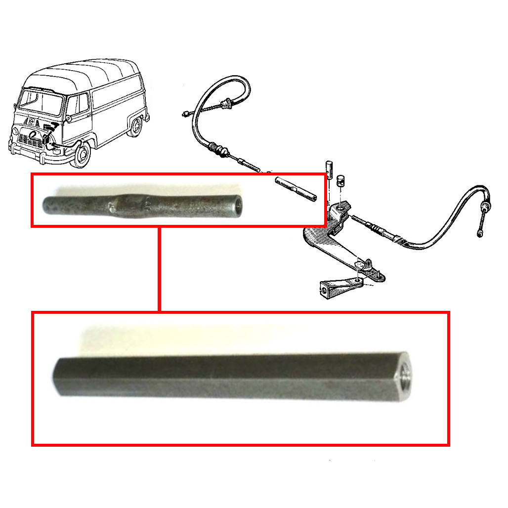 Manchon de réglage de Renault Estafette entre les deux câbles de frein à main secondaire.