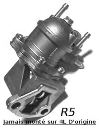 In this category, find the right fuel pump for your Renault 4L. The parts available here will help you find the right one for your R4. Fuel pump with primer lever, fuel pump with two outlets including one for the return to the tank, standard fuel pump, these parts have been carefully selected for the maintenance of your 4L.